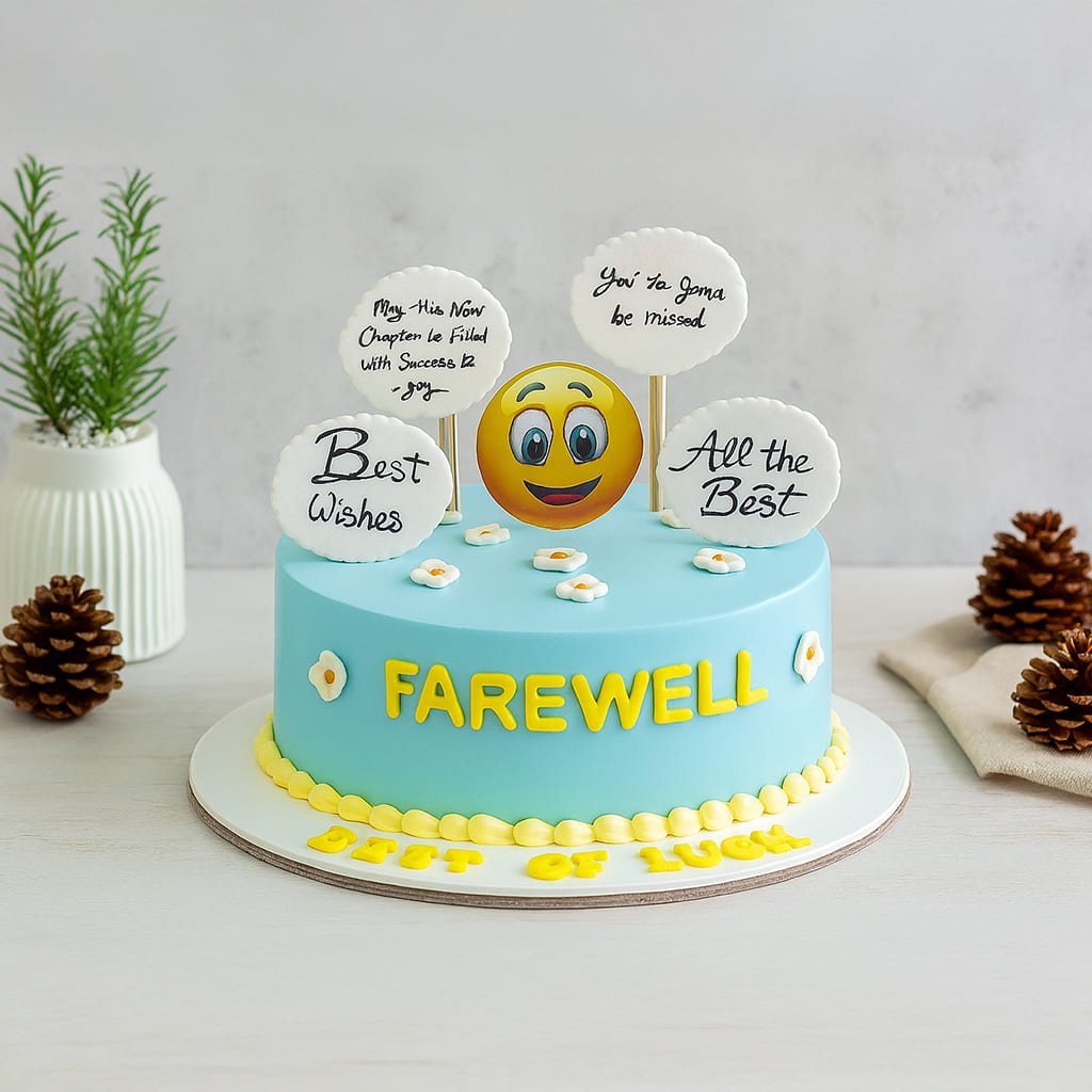 The Farewell Cake is a beautifully crafted dessert designed to commemorate significant transitions and goodbyes. This exquisite cake features multiple layers of moist sponge, delicately infused with flavors such as vanilla, chocolate, or lemon, ensuring a delightful taste that appeals to a wide range of palates. Each layer is generously filled with rich, creamy frosting, which can be customized to suit the preferences of the recipient. The cake is adorned with elegant decorations, including fresh flowers, edible glitter, or personalized messages, making it a perfect centerpiece for farewell gatherings, whether they are formal or casual.