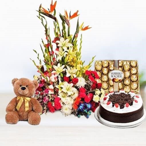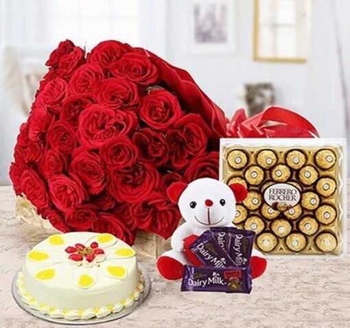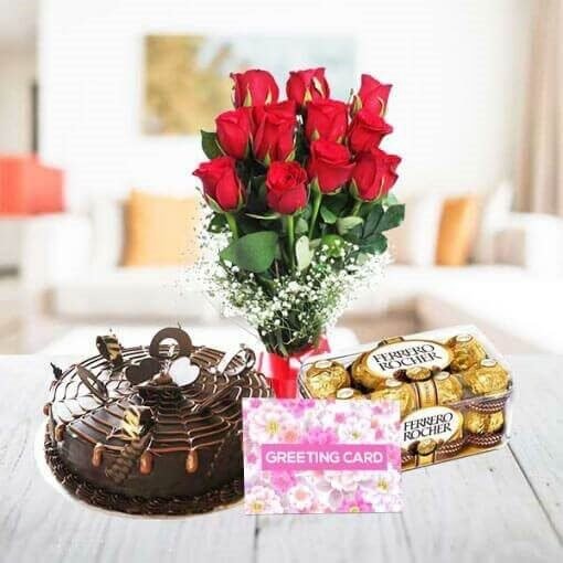 Product Highlights 12 Red RosesRed Paper PackingRed Ribbon Cake Flavour: Pineapple Type of Cake: Cheesecake Weight Available: 500gm and Above Shapes Available: Round and Heart-shaped Serves 5-7 peopleDelivered along with knife and candlesTake out from the refrigerator half an hour before cutting the cake Please Summary The best … ₹1,649.00 INR