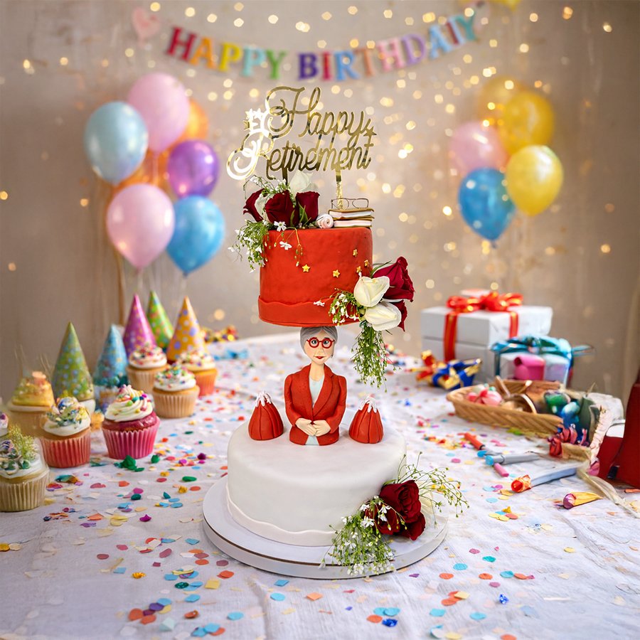 Salute a lifetime of dedication and service with our distinguished Captain's Uniform Retirement Cake. This custom-designed masterpiece is the perfect tribute for a retiring pilot, ship captain, or uniformed officer. The cake is expertly crafted to resemble a pristine white uniform shirt. It features realistic fondant details including: * The Uniform: A sharp stiff collar with a classic black tie and gold buttons. * Rank Insignia: Black and gold shoulder epaulettes with four stripes, symbolizing the rank of Captain. * Personalization: A chest pocket detailed with the retiree's name (shown here as "CAPT. HARRY") and a commemorative medal. * The Message: The cake board is hand-piped with a bold "HAPPY RETIREMENT" message in gold. Key Features: * Theme: Pilot / Captain / Military / Police Retirement. * Design: 3D Shirt styling with tie, badges, and epaulettes. * Customization: Name on the pocket and rank stripes can be adjusted. * Perfect For: Retirement parties for Pilots, Navy Officers, or Air Force personnel. * Flavor Recommendations: Classic Vanilla Bean, Scotch Whiskey Infused (upon request), or Dark Chocolate.